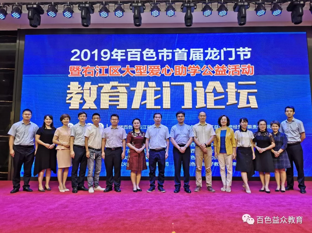 2019年6月16日下午,百色市首屆龍門節(jié)暨右江區(qū)大型愛心助學(xué)第一場公益活動—教育龍門論壇的舉行,拉開了百色市首屆龍門節(jié)公益活動的帷幕。本次論壇由共青團(tuán)百色市右江區(qū)委員會、百色市右江區(qū)益眾投資經(jīng)營有限責(zé)任公司聯(lián)合主辦,百色市右江區(qū)博學(xué)匯智教育培訓(xùn)學(xué)校有限公司、廣西百色益眾教育投資有限公司聯(lián)合承辦。教育無小事,論壇也得到了各級領(lǐng)導(dǎo)的極大重視。右江區(qū)區(qū)委常委、組織部部長張彩昊,右江區(qū)人民政府辦公室副主任譚再規(guī),右江區(qū)教育局副局長蔣傳剛,共青團(tuán)百色市右江區(qū)委員會副書記姚賢玉,百色市右江區(qū)益眾投資經(jīng)營有限責(zé)任公司總經(jīng)理趙家臣參加了本次論壇。參加本次論壇的還有右江區(qū)10所小學(xué)的校長、學(xué)校代表。論壇得到了家長熱烈歡迎,到場家長約500人。