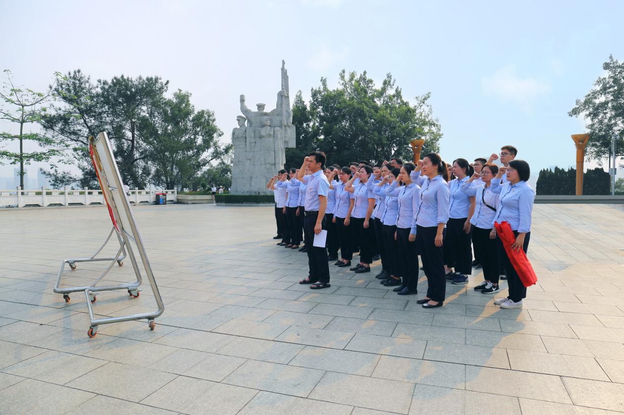 ????????全體黨員肅立默哀,向革命先烈敬獻花圈,莊重鞠躬表達對烈士的深切哀悼和無盡的敬仰之情。在黨支部書記岑文同志的帶領下,大家懷著對先烈無比崇敬的心情,列隊拾階繞碑體一周,并依次上臺為烈士們獻花,表達對革命烈士崇高的敬意和深切的哀思。
