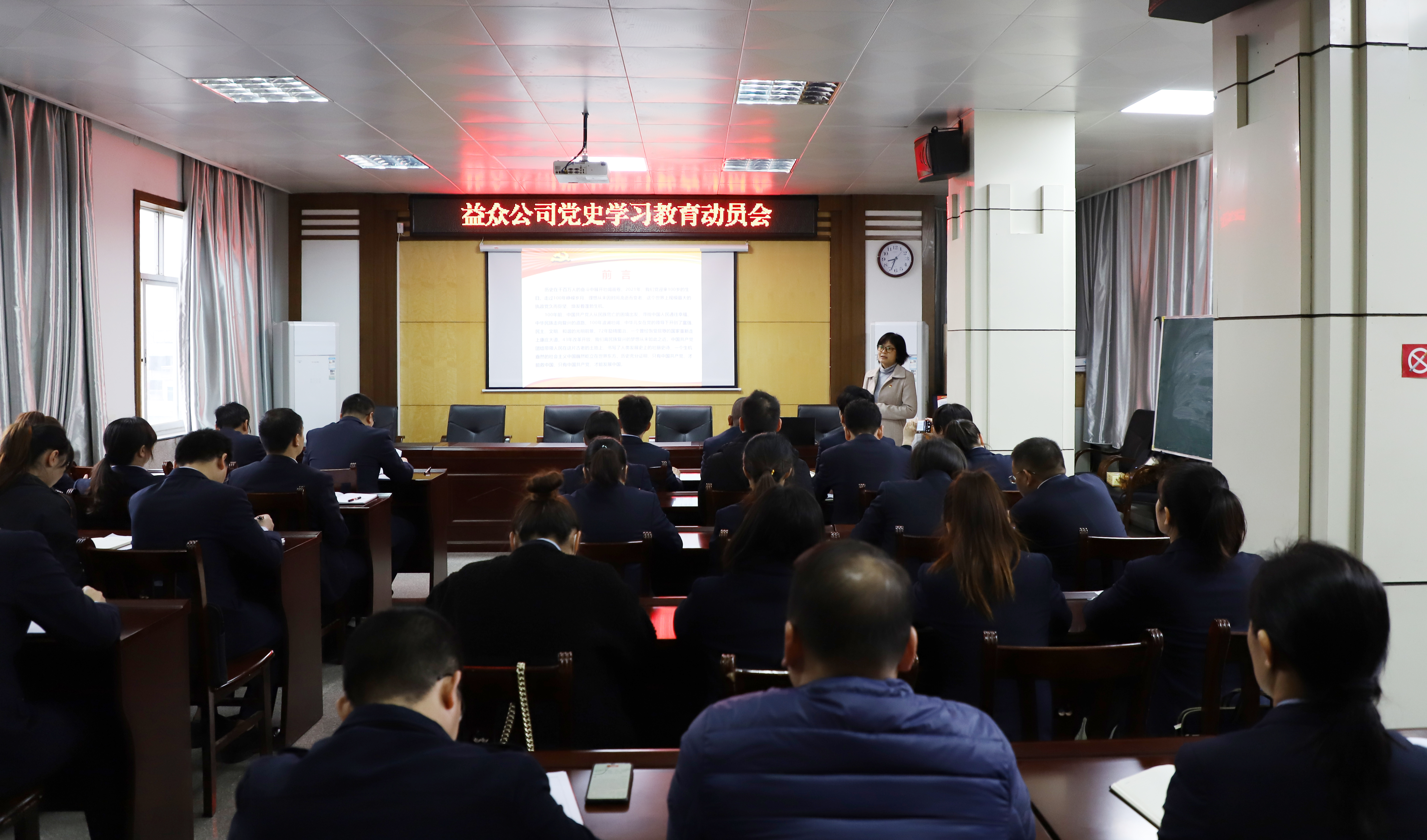 ????????3月12日上午,益眾公司召開黨史學(xué)習(xí)教育動員會,進一步深入學(xué)習(xí)貫徹習(xí)近平新時代中國特色社會主義思想,鞏固深化“不忘初心、牢記使命”主題教育成果,提高公司領(lǐng)導(dǎo)干部及黨員黨性修養(yǎng),并就公司開展黨史學(xué)習(xí)教育進行安排部署。益眾公司黨支部書記作動員講話。