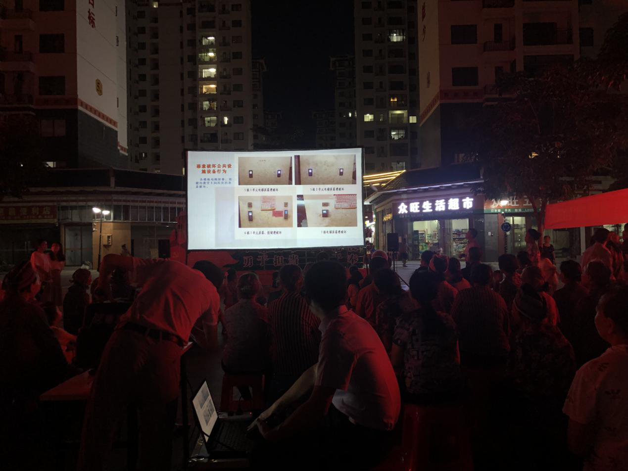 ????????活動開展期間,益眾物業(yè)公司工作人員用壯話為業(yè)主講解小區(qū)存在的不文明現象,講解相關文明知識,指出生活上因違規(guī)操作導致的安全問題等?;顒油ㄟ^播放文明行為宣傳片,公示生活中存在的不文明行為等方式全面深入向業(yè)主普及文明知識。