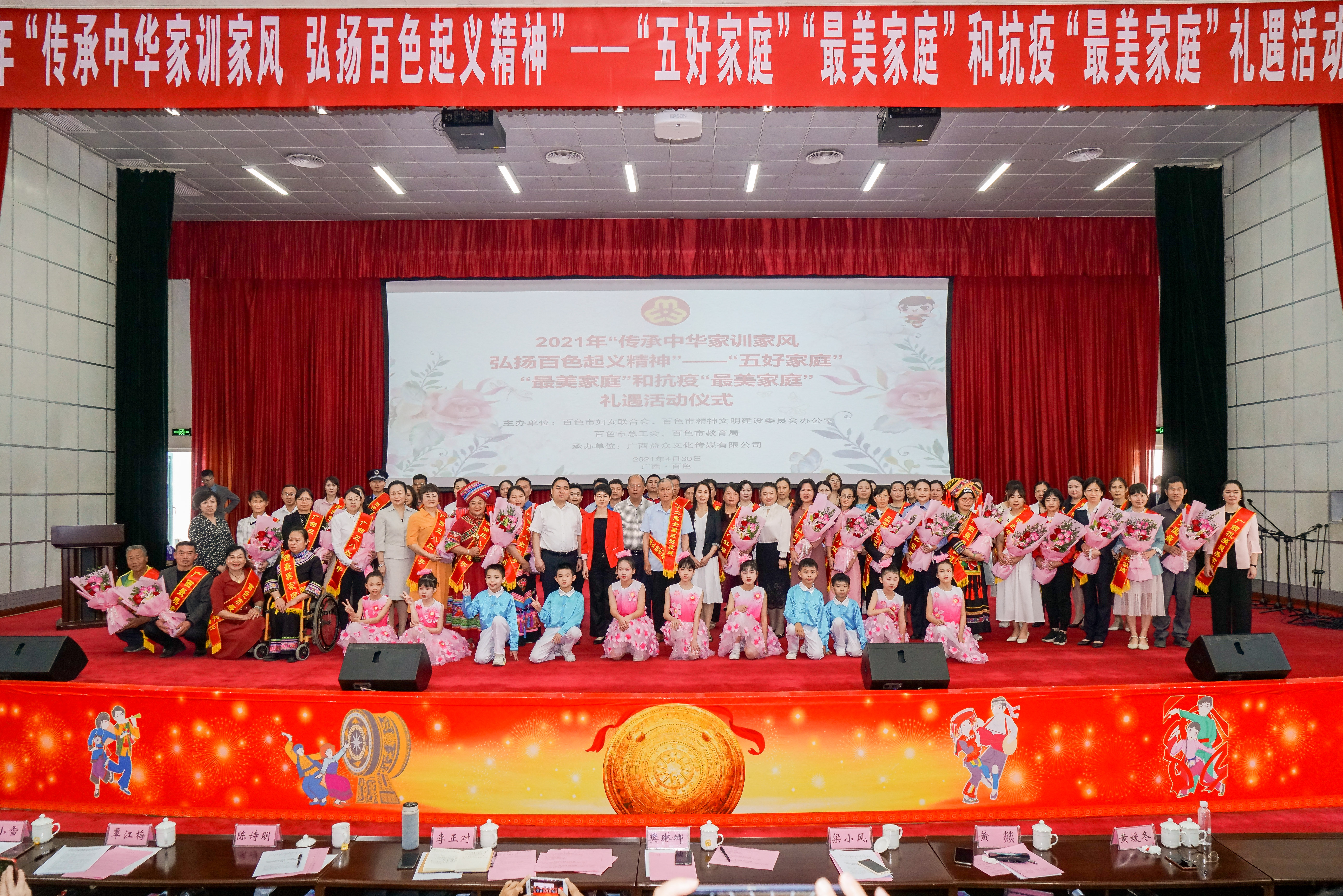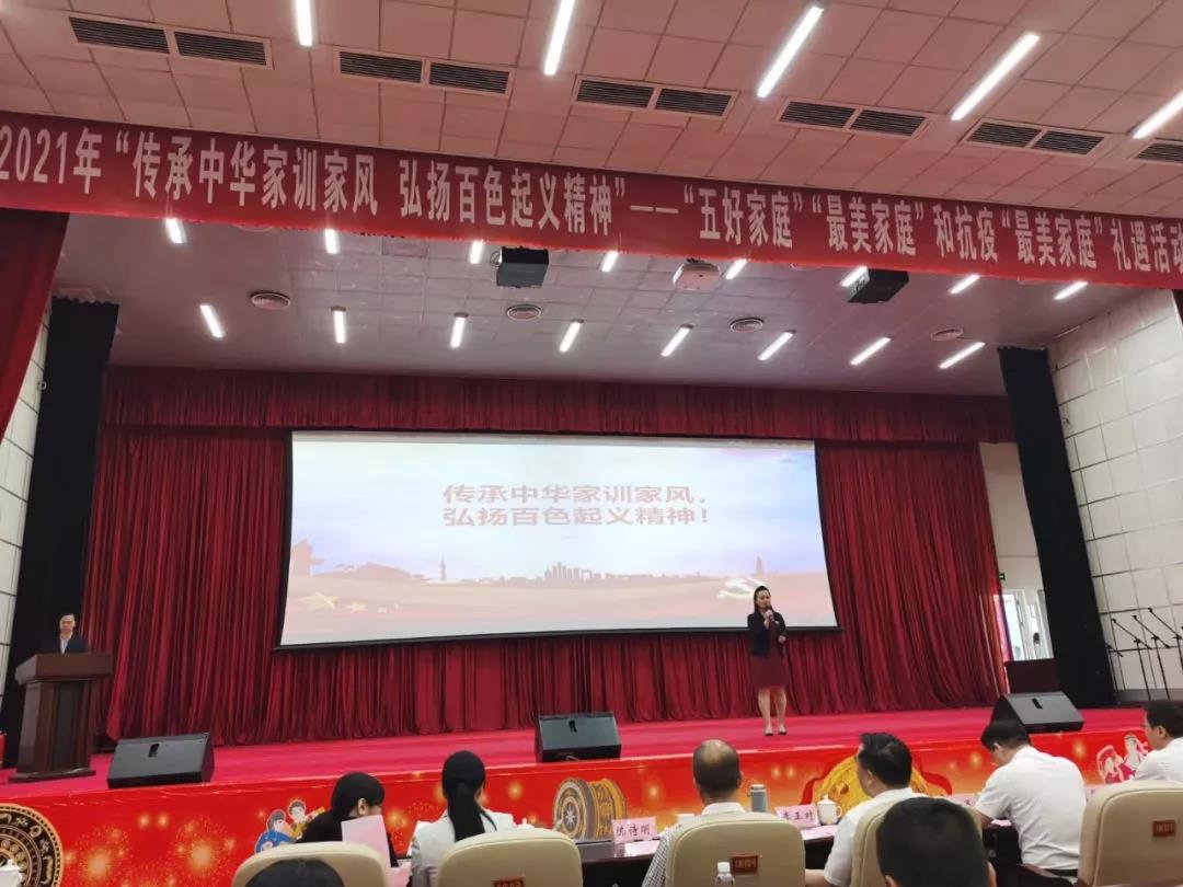 ????????為弘揚(yáng)中華民族家庭美德、樹立良好家風(fēng)、激勵抗疫精神,落實(shí)全國婦聯(lián)、自治區(qū)婦聯(lián)關(guān)于開展尋找“最美家庭”活動精神。4月30日,由百色市婦聯(lián)、市文明辦、市總工會、市教育局聯(lián)合舉辦,廣西益眾文化傳媒有限公司承辦的2021年“傳承中華家訓(xùn)家風(fēng)?弘揚(yáng)百色起義精神”——“五好家庭”“最美家庭”和抗疫“最美家庭”禮遇活動儀式在右江區(qū)禮堂舉行。來自2020年“五好家庭”“最美家庭”和抗疫“最美家庭”代表、“最美家庭”禮遇愛心單位代表以及百色市市直機(jī)關(guān)、企事業(yè)單位和社會各界代表等共計(jì)200多人參加活動。