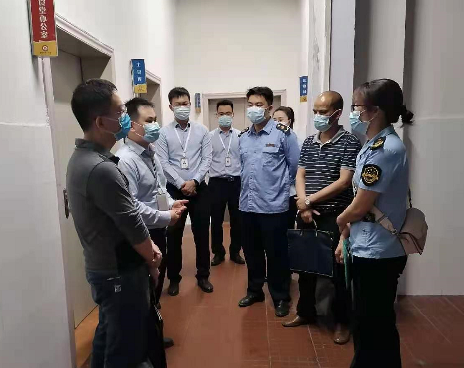 ????????3月18日,右江區(qū)市場監(jiān)督管理局到益眾托管一小校區(qū)開展食品安全監(jiān)督檢查,益眾托管公司負責同志陪同檢查。