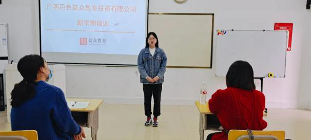 ??? 近日,為進(jìn)一步加強(qiáng)新教師的培訓(xùn)管理,提高新教師在理論學(xué)習(xí)、師德師風(fēng)建設(shè)、學(xué)生管理等方面的素質(zhì),盡快適應(yīng)公司的工作環(huán)境,廣西百色益眾教育投資有限公司結(jié)合公司教師職業(yè)特點(diǎn)和要求,組織開展新教師入職培訓(xùn)。參加培訓(xùn)的新員工是首批公司春季招聘30多名求職者中的佼佼者,來自北京師范大學(xué)、廣西師范大學(xué)等區(qū)內(nèi)外一流高等學(xué)府。本次培訓(xùn)主要圍繞企業(yè)文化、綜合能力、教師技能、實(shí)戰(zhàn)演練等方面開展。