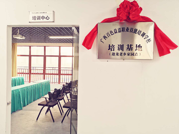 4月1日,廣西百色益嘉職業(yè)技能培訓(xùn)學(xué)校(簡稱益嘉職校)在老鄉(xiāng)家園—迎龍安置小鎮(zhèn)設(shè)立培訓(xùn)基地并正式掛牌營業(yè)。