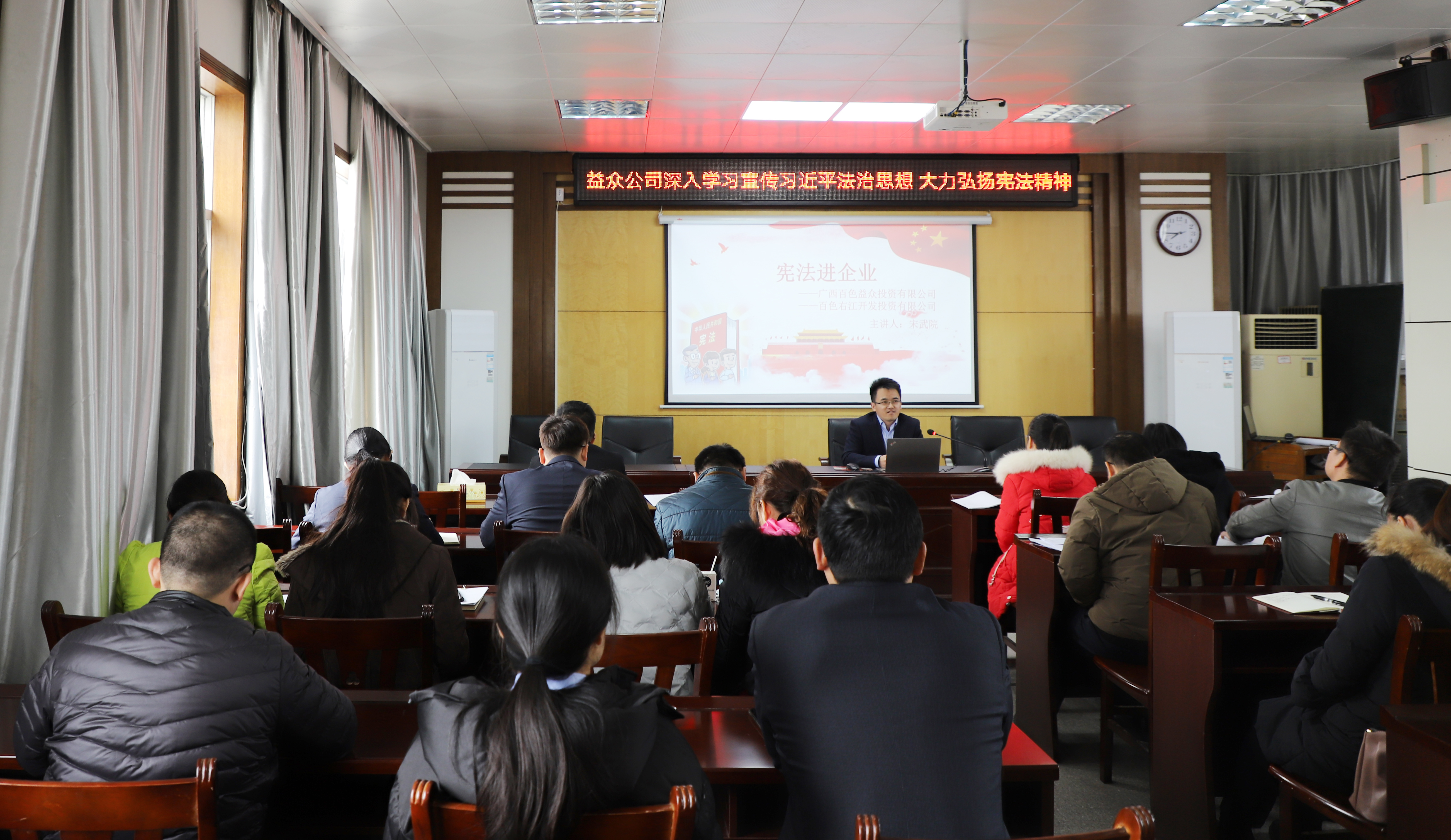 ????????為貫徹落實(shí)2020年百色市右江區(qū)“憲法宣傳周”活動的有關(guān)工作部署,營造良好的法治氛圍,弘揚(yáng)憲法精神、維護(hù)憲法權(quán)威,按照《右江區(qū)2020年憲法進(jìn)機(jī)關(guān)活動方案》要求,近日,益眾公司黨支部組織領(lǐng)導(dǎo)干部、黨員職工開展“憲法進(jìn)企業(yè)”學(xué)習(xí)宣傳活動,深入學(xué)習(xí)宣傳習(xí)近平法治思想,大力弘揚(yáng)憲法精神,積極引導(dǎo)員工尊法、學(xué)法、守法、用法,自覺尊崇憲法、維護(hù)憲法,深入推進(jìn)全面依法治企進(jìn)程。