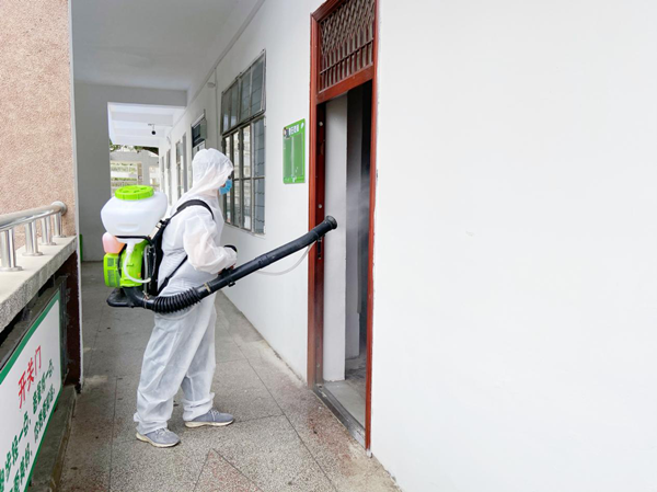 醫(yī)務(wù)人員對各宿舍進(jìn)行消毒