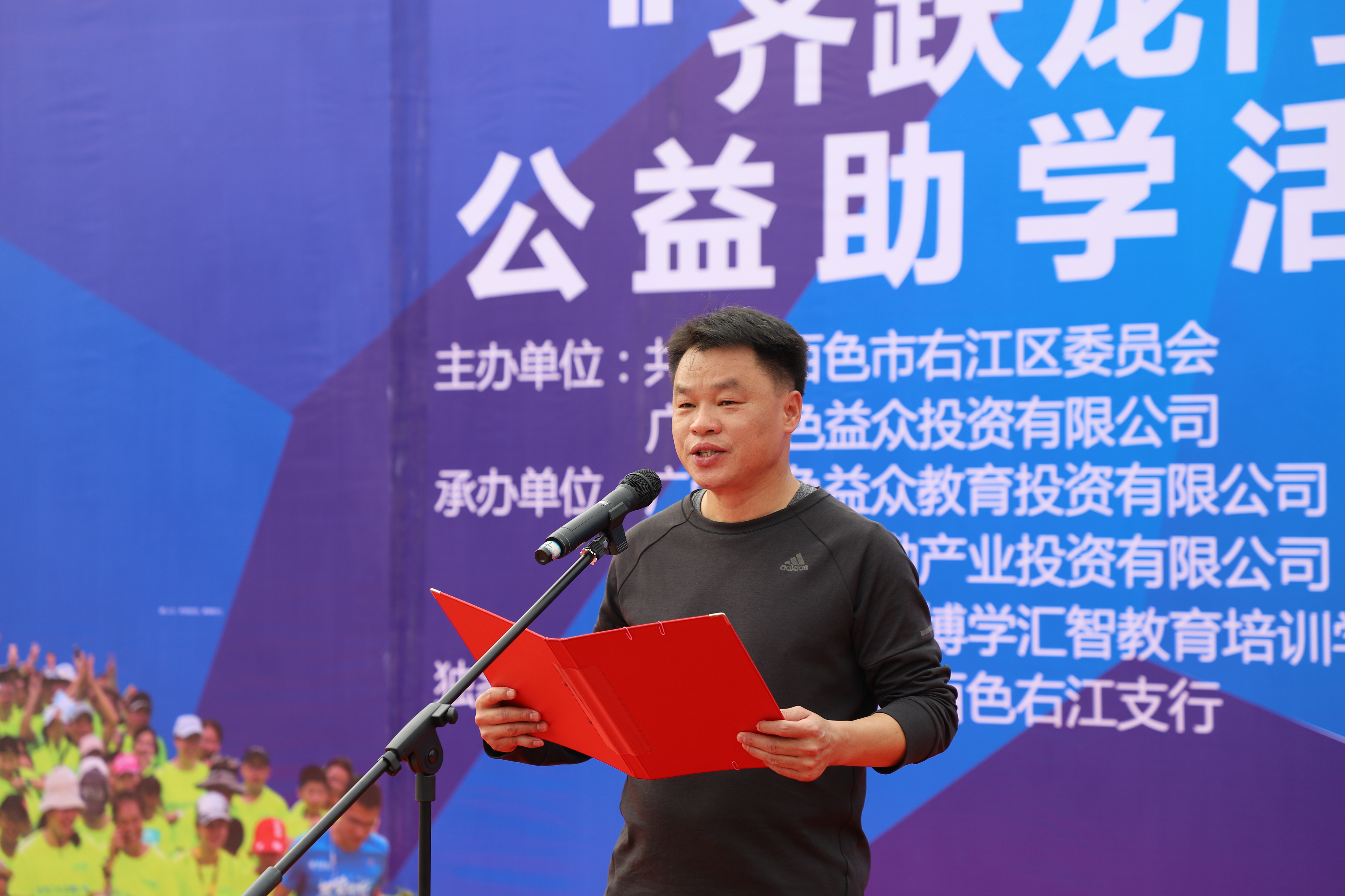 ????????本次公益助學(xué)活動由共青團(tuán)百色市右江區(qū)委員會、廣西百色益眾投資有限公司聯(lián)合主辦,廣西百色益眾教育投資有限公司、廣西益眾后勤產(chǎn)業(yè)投資有限公司、百色市右江區(qū)博學(xué)匯智教育培訓(xùn)學(xué)校有限公司聯(lián)合承辦。