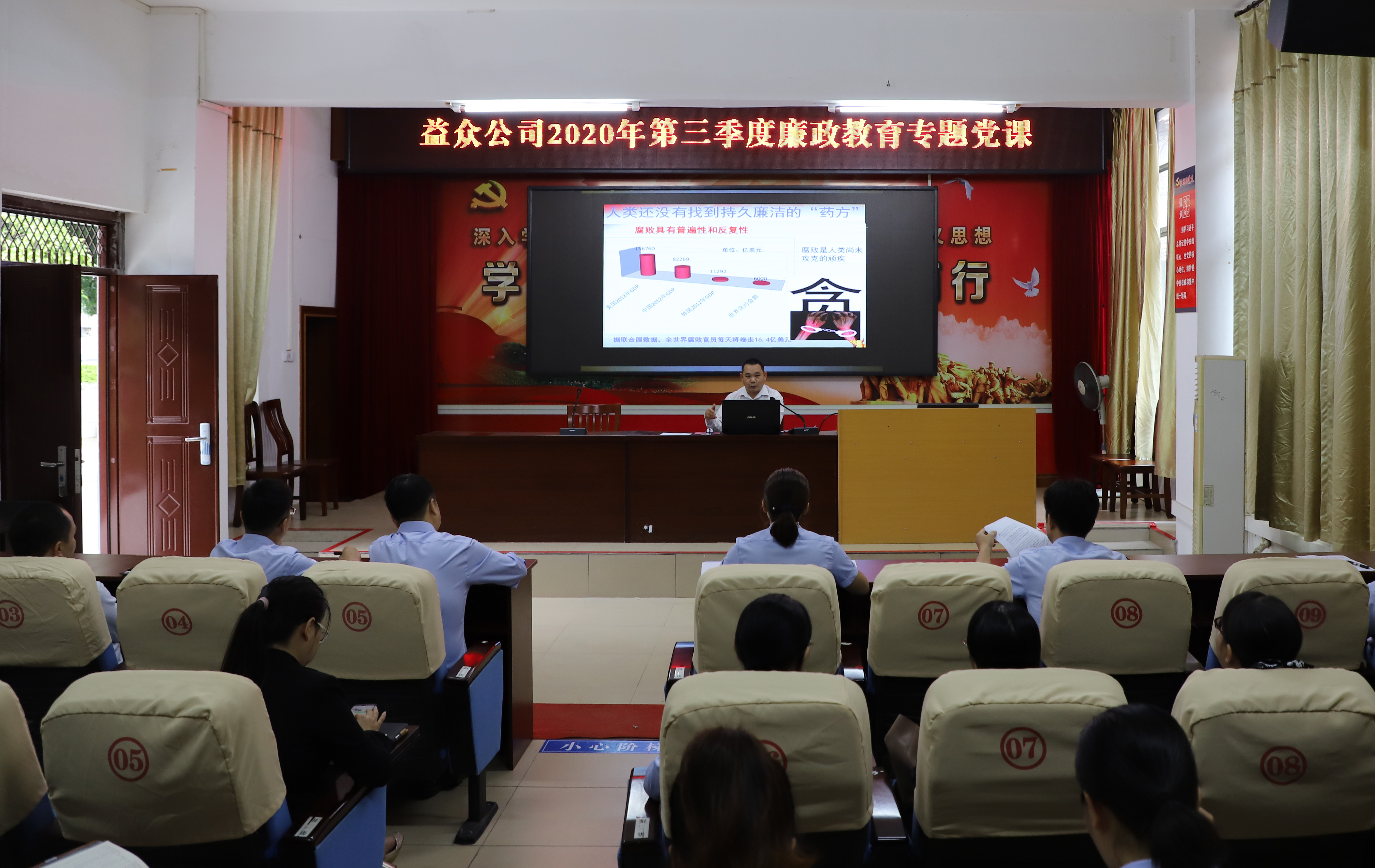 ????????為進一步增強黨員干部的廉潔從政、廉潔自律意識,筑牢拒腐防變的思想道德防線,切實做好廉政教育工作,9月25日下午,益眾公司黨支部組織全體黨員和中層及以上干部領(lǐng)導(dǎo)約40人到右江區(qū)委黨校開展了廉政教育專題黨課。