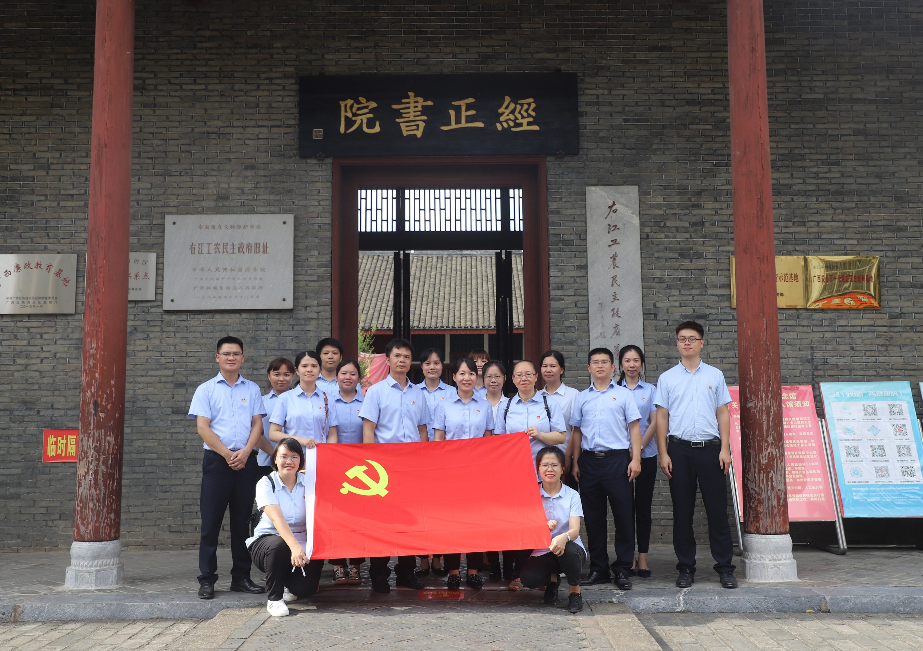 ????????當(dāng)日下午,益眾公司黨支部全體黨員先后到田東縣那恒革命史館、二芽碼頭、紅軍會師廣場、右江蘇維埃政府舊址、百谷紅軍陳列室等地走訪學(xué)習(xí),以鄧小平在田東的革命足跡為主線,進行挺進右江、勝利會師、經(jīng)正書院等現(xiàn)場教育活動,接受革命精神的洗禮。