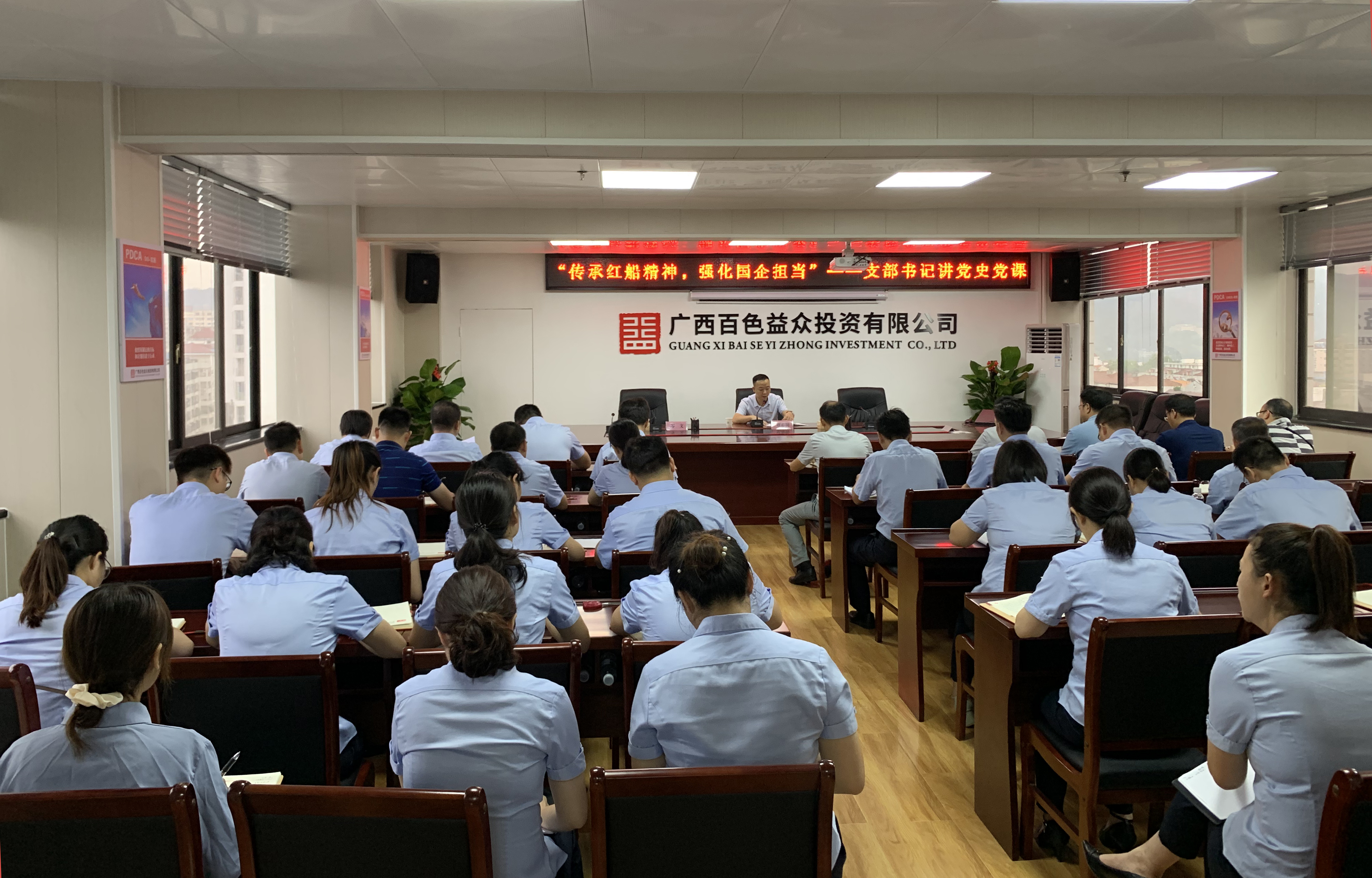 ????????為貫徹落實(shí)百色市、右江區(qū)關(guān)于開(kāi)展“書(shū)記講黨史”活動(dòng)的有關(guān)工作部署,進(jìn)一步推動(dòng)企業(yè)黨史學(xué)習(xí)教育走深走實(shí),6月11日上午,右江區(qū)國(guó)資中心黨支部書(shū)記、主任覃春明到益眾公司開(kāi)展“書(shū)記講黨史”活動(dòng),益眾公司領(lǐng)導(dǎo)干部、全體黨員、入黨積極分子約60余人參加了活動(dòng)。
