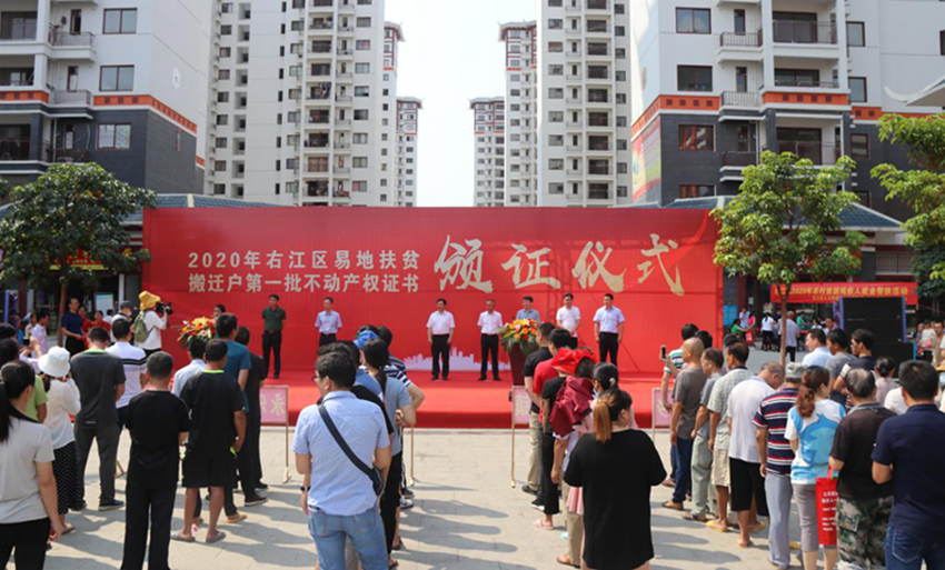 右江區(qū)“老鄉(xiāng)家園—迎龍易地扶貧搬遷安置小鎮(zhèn)”第一批不動(dòng)產(chǎn)權(quán)證書順利發(fā)放