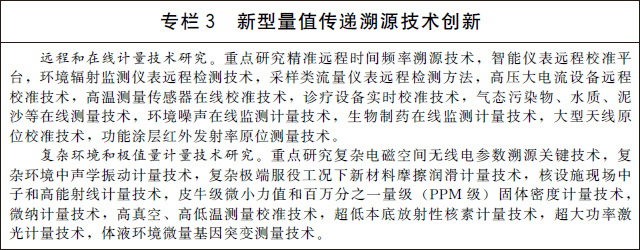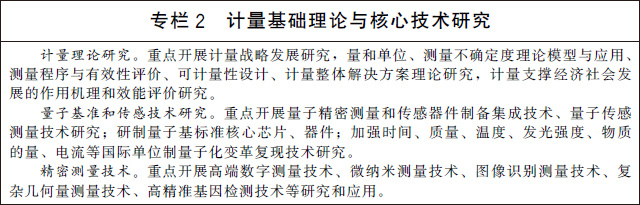 (七)加強關(guān)鍵共性計量技術(shù)研究。加快開展量熱技術(shù)、數(shù)字化模擬測量技術(shù)、工況環(huán)境監(jiān)測技術(shù)等基礎(chǔ)共性計量技術(shù)研究。加強智能化計量校準(zhǔn)技術(shù)研究,開展計量軟件功能安全測評等關(guān)鍵技術(shù)研究和應(yīng)用。加強高精度、集成化、微型化、智能化的新型傳感技術(shù)研究,攻克高端計量測試儀器設(shè)備核心關(guān)鍵部件和技術(shù)。建立有利于計量新技術(shù)、新方法向產(chǎn)業(yè)轉(zhuǎn)移的服務(wù)平臺。